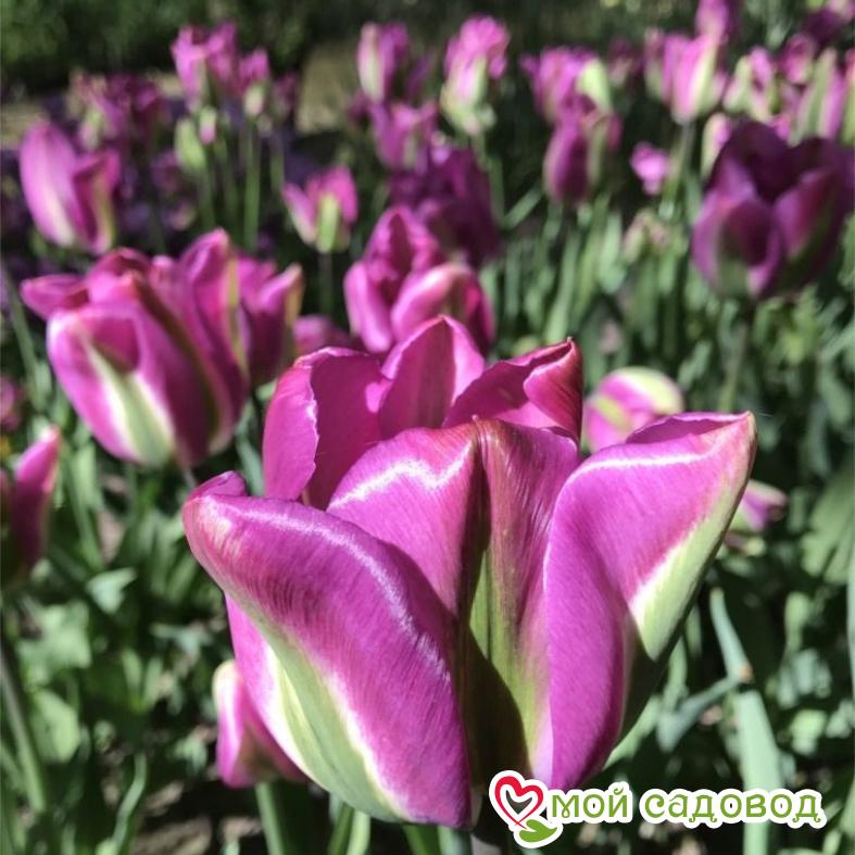 Тюльпан класса люкс.Относится к сорту зеленоцветковых. Экстравагантное сочетание цветов зеленого и фиолетового,очень удачный микс. Бокал крупный,порядка 9 см. В клумбах очень хорошо сочетается с белыми цветами. Высота тюльпана около 50 см.