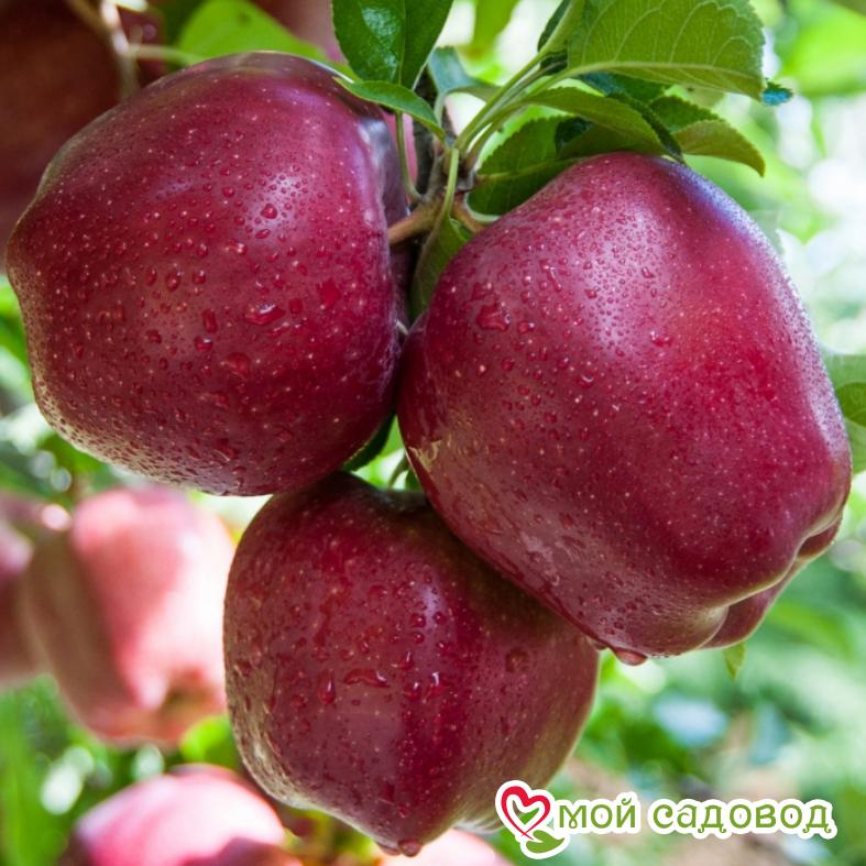 Деревья слаборослые или нижесредней величины с широкопирамидальной, редкой, компактной кроной, образованной ветвями, отходящими от ствола под острыми углами. Плоды средней величины, 146 г, продолговато округло-конической формы, несколько асимметричные, слабо широко ребристые. Основная окраска зеленовато-желтая. Покровная окраска ярко- красная размытая и темно-красная, полосато штриховатая на большей части плода. Кожица плотная, гладкая, с небольшим восковым налетом. Мякоть желтоватая, или кремовая. Плотная, нежная, сочная, с сильным ароматом, мелкозернистая. Вкус кисловато-сладкий, очень хороший, десертный В нашем интернет-магазине вы сможете купить Саженцы яблони Так же возможно вас заинтересуют Яблоня Мельба и Яблоня Глостер .